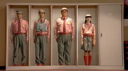 - Mydo Suit : Ultra-light, fire proof, water proof, windproof, has high defensive strength. Has built in slots for seven objects to be taken on missions. It is only worn during mission, otherwise the Mydo team wears the uniform of the gas station they use as a cover for their base.