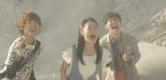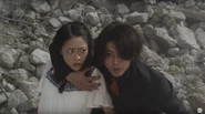 Manipulated by Juggler, VTL approved the missile launch. The explosion instead fed energy into the storm, and a red flash signaled Magatano-Orochi's descent. After Orb's defeat, Naomi searched the disaster site for Gai. As she reached him, Juggler appeared and struck her unconscious with the Jashin Blade, vowing to show Gai "true hell." The Giga Lord Monster Strikes Back