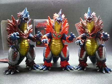 The three Neosaurus toys (leftmost: 1998 first release, center: 2000 ver.)