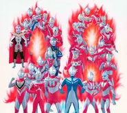 At this point, the focus is taken off Kanji while Ultraman Ace, Ultraman Taro, Ultraman Leo, Ultraman 80, Ultraman Joneus, Ultraman Scott, Ultrawoman Beth, Ultraman Chuck, Ultraman Zearth, Ultraman Powered and Ultraman Great's worlds are shown to their respective instrumental theme songs.