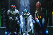- Saucer: Don Nostra and the Planet Invasion Union's main transportation is a conjoined saucer, which was the same model as the first generation Alien Metron. The saucer itself has the dimensional distortion machine that traps its victims within space time continuum, although it is revealed to have a leakage, as SSP and Shibukawa used it to escape.