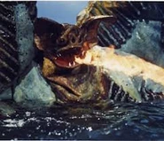 Pestar was an aquatic monster that had been preying on oil tankers that wandered too close to his territory for a while. He was first spotted by a drunk man, who tried to alert the authorities, but was dismissed for being intoxicated. Once the Science Patrol heard about the monster and noticed the connection to the disappearance of oil tankers, they were called into action to deal with the monster. They first attempted to lure the monster out of hiding with oil barrels from a nearby oil refinery, but it took a long time to lure the monster out of hiding as it was suspicious of the Science Patrol's actions, and fed once the VTOL vehicles were running out of fuel.