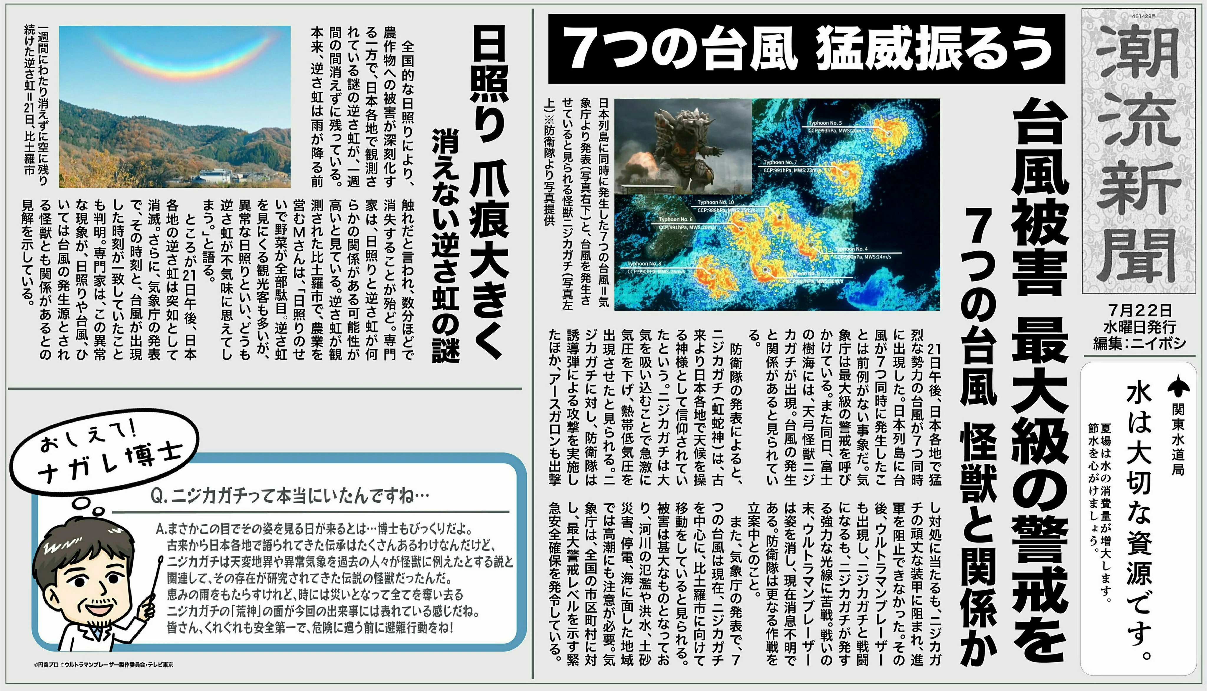 Upside-down rainbows are being sighted throughout Japan. They are said to herald the onset of rain. Gento suspects that a kaiju may be behind this and decides to visit Professor Yokomine, a leading kaijuologist and also his mentor from school.