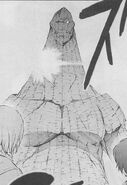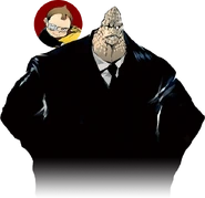 Red fought Shinjiro who, for a time, held his own against the giant but the boy was eventually overpowered. With his aggression increased, Red threw Shinjiro at a mother and child, causing him to suddenly gain the power of flight. With that, Red was no longer able to fight Shinjiro and the battle was ended. The whole thing was a set-up to get Shinjiro to awaken more of his latent powers.