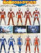In this novel, we are introduced to an alternate version of the Land of Light and are given info about its Ultras and their evolution. In this version the Residents of the Land of Light sport traits of their main counterparts and the People of U40. All of them have natural Human forms and typically spend most of their time in that state. The Ultras appear to culturally relish their lost 'humanity' as noted that Ultras and those turned into Ultras, are unable to cry even in human form. Another cultural point stated is that 'once a week', Ultra families sit down and have a regular meal instead of using their technology, the Ultra Conditioner, to automatically satiate them, and cleanse their bodies of impurities.