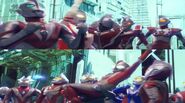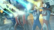 Before the events of Ultraman Geed, the Ultras ventured to the World of Side Space and participated in the Omega Armageddon, fighting against Belial and his army. However, the Ultras could only gaze at their failures as Belial succeeded in triggering Crisis Impact before Ultraman King sacrificed his corporeal form to undo the damages Belial had caused, effectively becoming the World of Side Space's host. Afterwards, the Ultras became a popular legend among the people of that universe’s restored Earth.