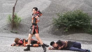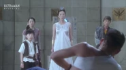Later on, Sakuya, Arisa and Gouki accompanied by Musashi stormed Etelgar's fortress to purify Arena and free the Heisei Ultramen, but were intercepted by the mind-controlled princess and Etelgar, who shot his fear rays at the three UPG members to manifest their worst fears. Since Sakuya was afraid of bugs, she found herself in a vision being chased by a giant rhinoceros beetle, much to her horror. However, after remembering Hikaru's encouraging words, she and the others confronted their fears head-on, and Sakuya imagined herself to grow giant like an Ultraman and lift the beetle in her hand. The UPG members and Musashi then released the Heisei Ultras from their prison and escaped.