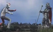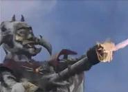 Satangone advanced to PAT's base. Jumborg Ace appeared to battle him but Satan Go-Ne shot energy chains that wrapped around his neck. Jumborg Ace sliced off both the chain and Satan Go-Ne's right arm with the Jum Saber. Satan Go-Ne told Demon Go-Ne to detonate him, trying to blow up Ace at the same time. However, it was delayed and Jumborg Ace managed to get away from him. Satan Go-Ne's head was blown off. His body then blew up in a large explosion.