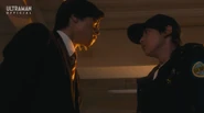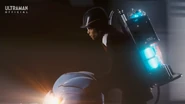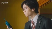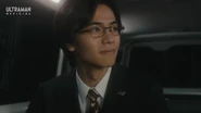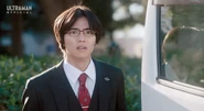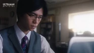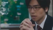 During the disturbance, Trigelos emerged from the dimensional rift. While evacuating civilians, Shu spotted Yuma, who was supposed to stay at the base, heading toward the scene unauthorized. Before Shu could intervene, Trigelos unleashed resonating soundwaves that triggered the Onyx light within Yuma's chest to manifest. Realizing at last that Yuma was Ultraman Arc, Shu quickly drove him away from the danger zone and tried to confirm the truth. Yuma, however, refused to explain. Respecting his silence, Shu chose not to push further but assured Yuma of his support and concern.