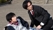 Subsequently, Shu, as an investigator, began assisting with SKIP's missions, including inspecting the kaiju sighting locations and searching for evidence. During this period, he also maintained a good relationship with Yuma and others. At the same time, while interacting with the residents of Hoshimoto City, he gradually changed his previously more serious perspective on things and learned from the experience.