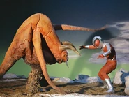 As Fireman went to rescue to the trapped SAF group, Spacer awoke and attacked Fireman! Spacer took a toll of Fireman with its toxic gas. Gomerus helped Spacer as its tentacles choked Fireman. Fireman then backfliped and destroyed Spacer with his Fire Flash. The Secret of Planet Gomerus