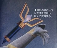The Sparklence[1] was Daigo Madoka's transformation item, used to transform into Ultraman Tiga. Later in the movies Ultraman Tiga: The Final Odyssey and Ultraman Tiga Side Story: Revival of the Ancient Giant, other versions of the Sparklence appeared, bearing very different designs from each other and the original.