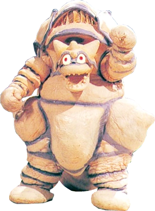 Created by someone else instead of Takeshi, Teleboze is nothing more than a peach-colored, timid creature with a childish innocence. When Gridman stops it, the monster apologized for the rampage. However, Takeshi rewrites the Kaiju's data, resulting with Teleboze becoming a mindless monster with a rhinoceros-like head and had to be deleted by King Gridman's King Grid Beam.