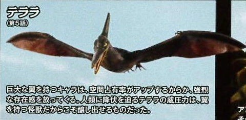 Terara is the second Pteranodon to appear in the TV series Dinosaur Great War Izenborg episode five.