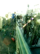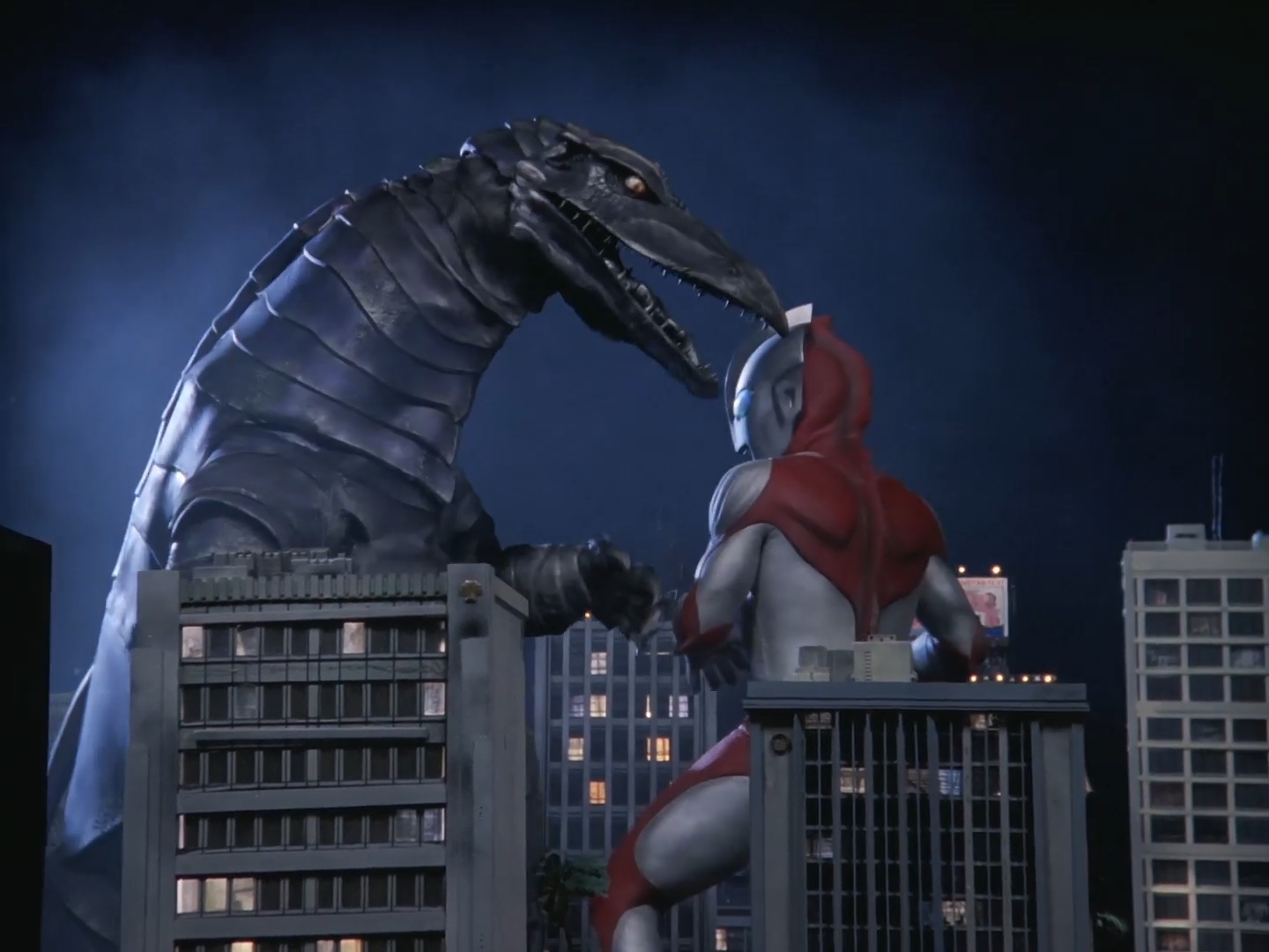 - The city models, which were criticized by Tsuburaya Productions in the first episode "On a Mission from M78", were significantly improved in this episode. This included adding finer details to the house models, such as attaching various printed materials and advertisements on the inside of windows, or shaping tissues to resemble small curtains. Shadows were also added to enhance the realism of light shining through windows at night. Additionally, the billboards and the backs of the signs were reinforced with truss structures for stability. To further enhance the quality of the models, safety ladders were installed to reflect human-scale proportions."
