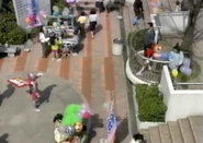 - Alien Baltan and Garamon suit actors are seen advertising the movie outside a cinema.