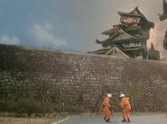 This episode marked the first time since Godzilla Raids Again (1955) that a Japanese film or TV show featured the destruction of Osaka Castle.