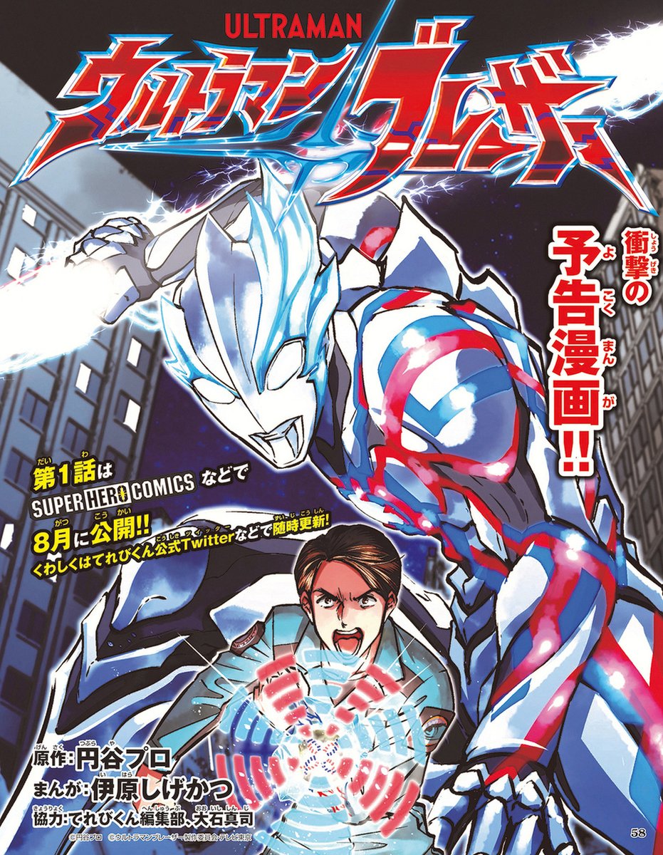 Ultraman Blazar(ウルトラマンブレーザー, Urutoraman Burēzā) is a manga series that follows the continuity of its namesake television series. The series was written and illustrated by Shigekatsu Ihara and distributed through the monthly Televi-Kun magazines and online platforms.[1] It was first announced on July 8, 2023.[2]