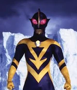 Ultraman Shadow is an anti-Ultraman Zearth robot made by Lady-Benzene. In contrast to Zearth's coloration - red and white, with yellow eyes - Shadow is painted black and yellow, has red eyes, pointed ears, a yellow Color Timer, and a more prominent head fin. He used his full power against Zearth, but was destroyed in his final battle against his true counterpart.