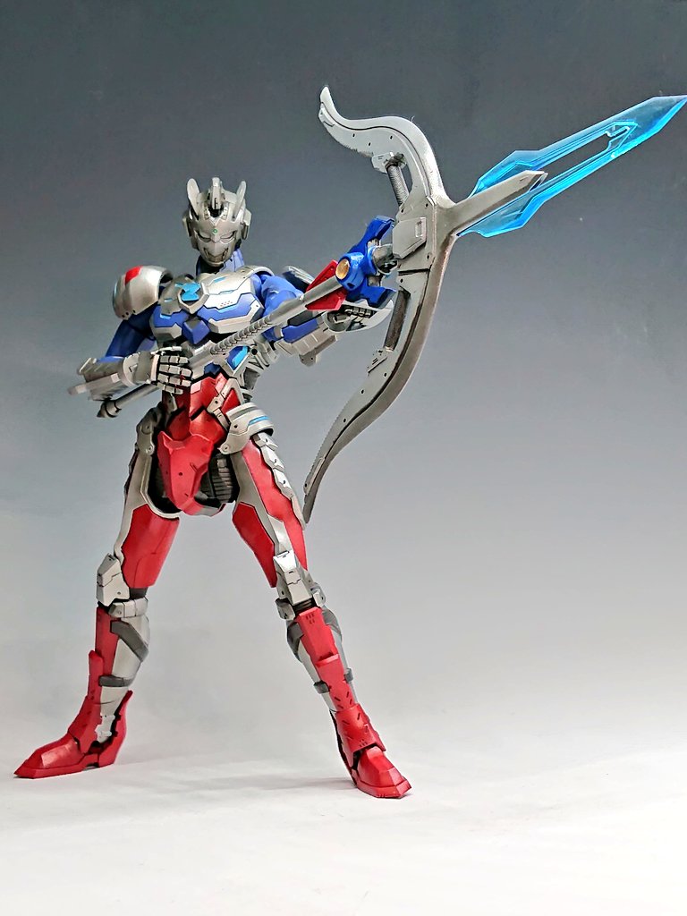This Ultraman Suit design is the grand prize winner of the first Ultraman Suit Plamodel competition.[97] It's design was created by mixing the Figure Rise-Standard figures of Ultraman Suit Ver.7 and Suit A and the Ghirarga Ghiratails from the Geara Ghirarga from Gundam Build Divers.[93][98]
