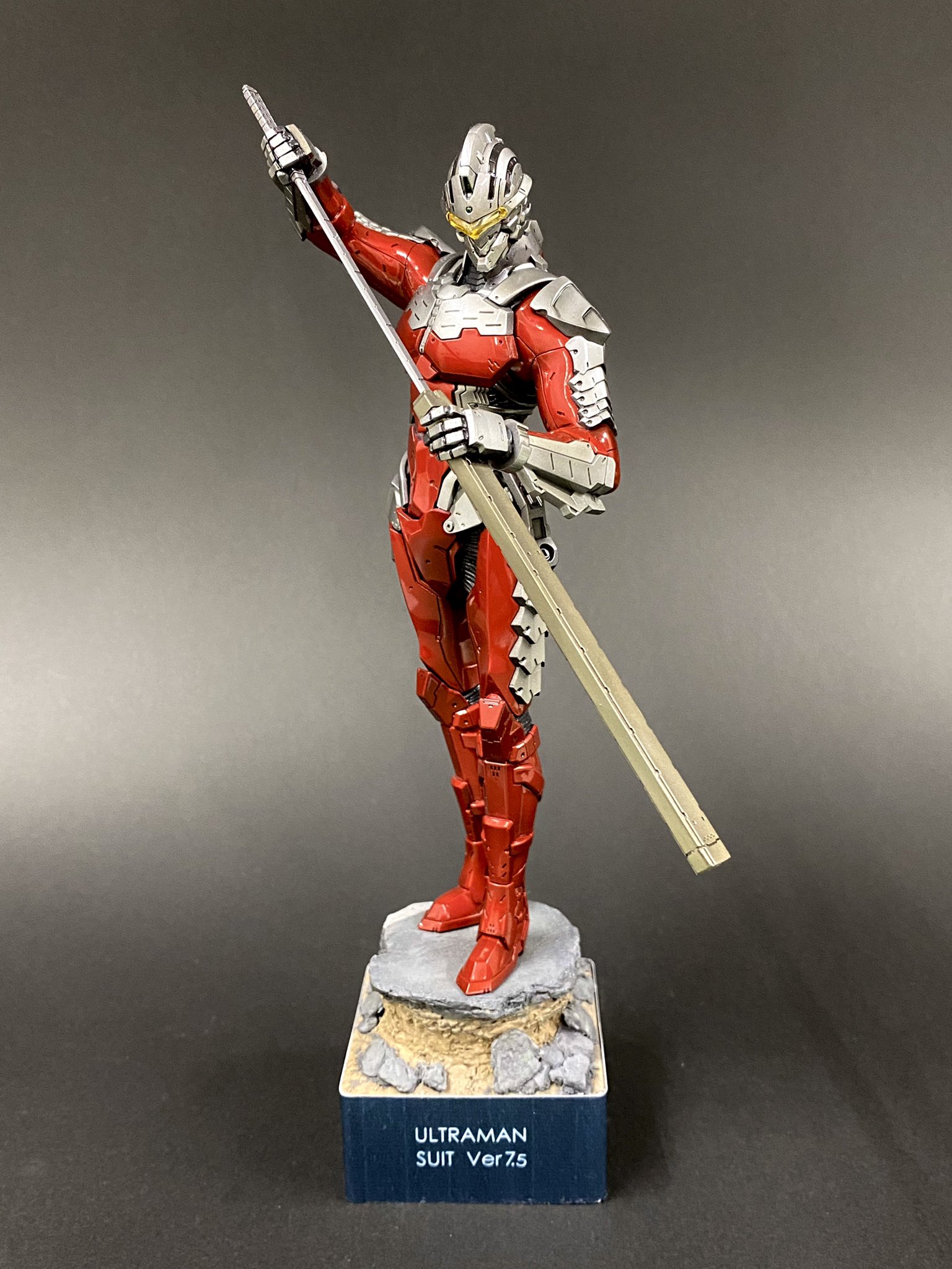 ULTRAMAN SUIT 7.5[117] is one of the winners of the second Ultraman Suit Plamodel competition.[118] The model was focused on making the kit in a fixed pose and showing the tension of pulling out the sword.[119]