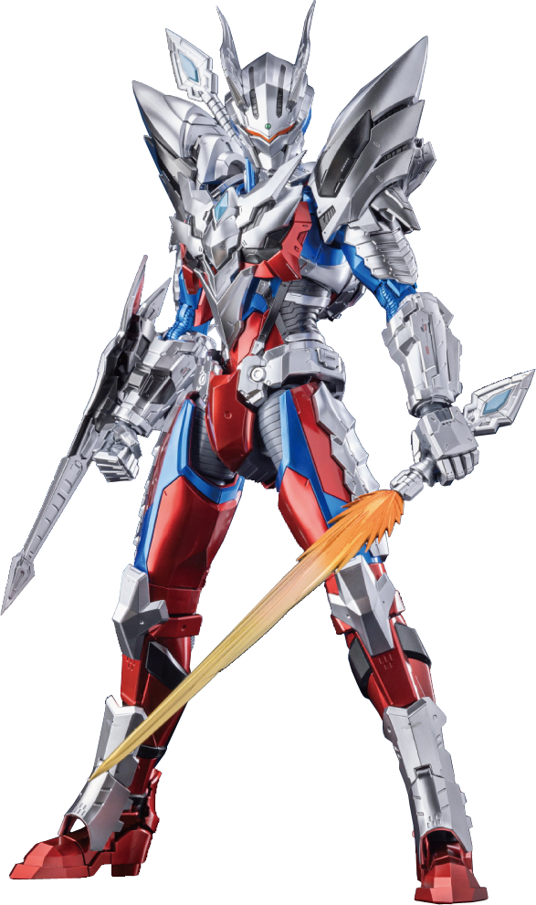 Based on the Zero Suit, this suit was created by feeding back the battle data of Moroboshi and the Leo Brothers, and is equipped with a new reactor with the Z mark on its chest. The exclusive Z Lance weapon is a multi-weapon that can be used in different directions.[109]