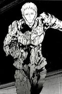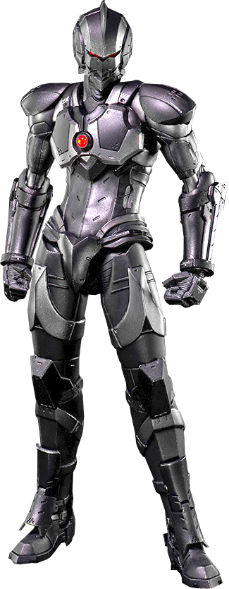 A mysterious person who wears a suit of armor that closely resembles the Ace suit and assassinates aliens. Because of his appearance, the SSSP call him by the codename "the Musha".[94] His true identity is that of an American intelligence officer. After losing his family to aliens, he developed an intense hatred for them, and has been going around attacking their hideouts.[95] The suit was a new model developed by Yapool that was stolen by the officer. It was later modified by scientists on Earth, and three arms were added to the back of the head. The arms are directly connected to the wearer's brain, allowing them to move freely.[96]