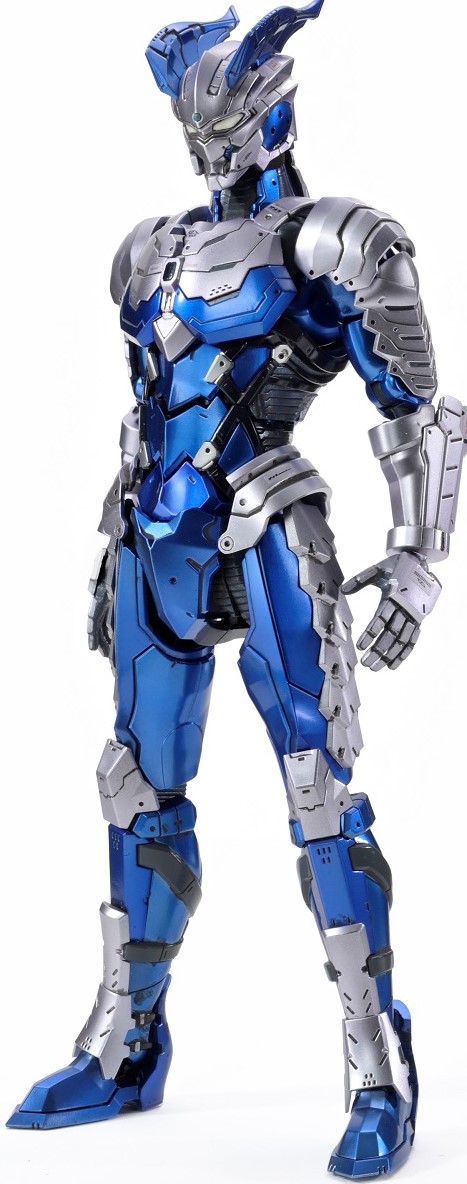 This Ultraman Suit design is the winner of the Eiichi Shimizu award of the first Ultraman Suit Plamodel competition. It's design was created by colouring the Figure Rise-Standard figure of Ultraman Suit Zero in achromatic grey[103] and replacing the crest Sluggers with demon horns.[104]