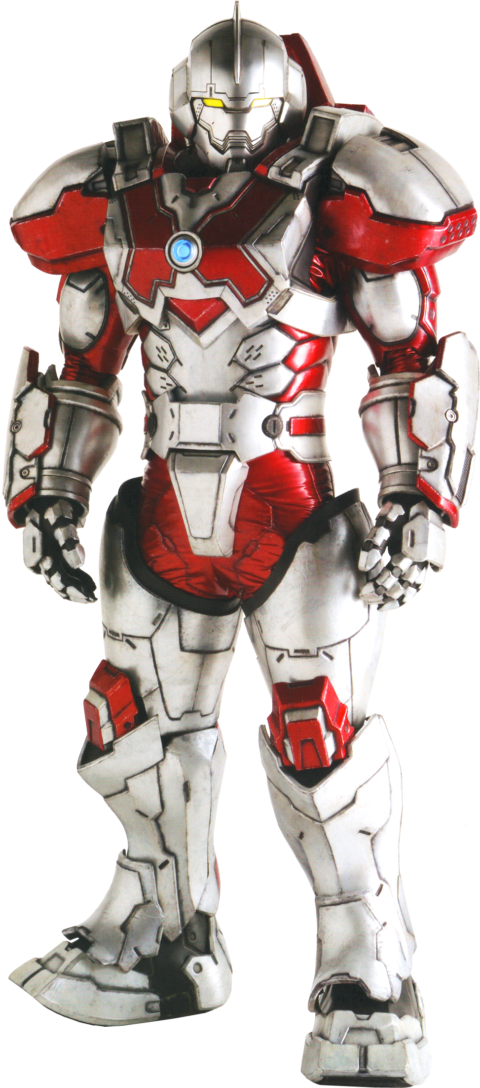 The newer Ultraman Suit worn by Shinjiro, this suit more closely resembles Ultraman. It has all the same abilities as the first one but has a helmet and added armaments such as the Spacium Blades and the Spacium Beam. Its first use was also against Bemular in the same battle that saw the end of the prototype's use. The suit was described by Ide as a reinforced version of the prototype version, meaning greater protection and more features.