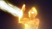 Daigo raises the Sparklence to the sky and activates by shouting "Tiga!". The Sparklence' wing like "appendages" then opens and light shines from within transforming Daigo into Tiga.
