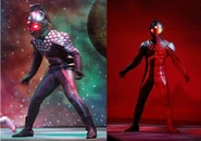 The Ultraseven Geist is a black colored Ultra Warrior born from the grudges of past monsters that Ultraseven fought before, in addition to the warrior's combat data. Seven Geist had appeared thrice in the annual Ultra Hero Battle Theater! and was under ownership of various aliens depending on the stageshow: Alien Guts (fifth), Alien Endeal (tenth) and Alien Zarab (twelfth). In the fourteenth stage show, a Halfbody variant was among the combatants of Kaiser Belial to fight against Ultraseven.