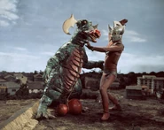 - Veron's suit appears in Ultraman Leo episode 9 as part of the Monster Corps Show.