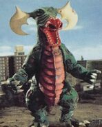 Veron was a Kaiju that appears in the TV series, Ultraman Taro. A monster with a particular affinity to alcohol, he crash landed on Earth and proceeded to wander in an intoxicated state until Taro and a group of Alien File stepped in to help him leave the planet.