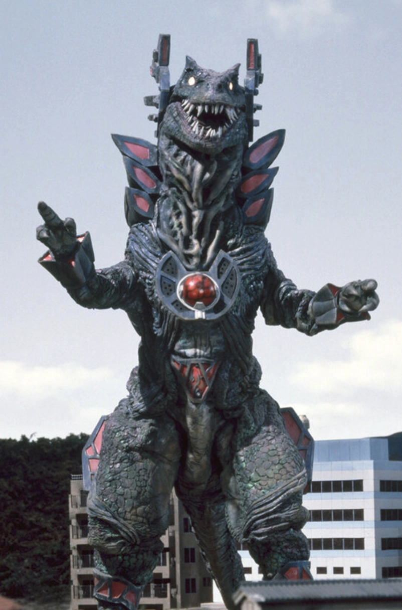 Hours later, the ground split open across the city as the second Weaponizer was activated. This second machine began moving towards its sibling, and if they came into contact, they would trigger their most destructive weapon—a neutron bomb that could devastate the planet. GUTS' firepower proved ineffective against the dinosaur-like war machine, prompting Daigo Madoka to transform into Ultraman Tiga.