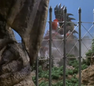 But as he prepared to finish him, the infant Val broke free and attacked but was no match for Zakira and beaten down by the behemoth's great strength then Zakira bit into his neck, looking for blood. Thankfully, seeing the young monster in trouble awakened 80 who fought the space creature again with renewed strength, pummeling it with a barrage of kicks and punches.